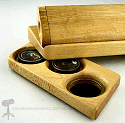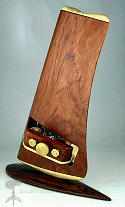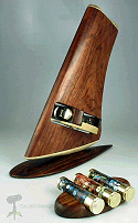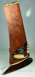 This is #51. Bubinga exterior, cocobolo base, birdseye maple eyepiece. Beautiful piece of wood sculpture. Innovative object cell design of 3 liquid-filled cylinders aligned adjacent to each other. Each of the cylinders can be turned separately to change either the inner, middle, or outer portions of the image, or all 3 can be turned in unison using a single knurled knob.