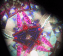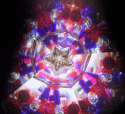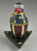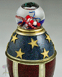 Special features: This is #47 of 50. Goose Egg Scope. Decorated with red, white and blue sparkles in a flag-like design. A lamp-worked flag is permanently attached to the end of the object cell (a round clear oil-filled marble). Commemorative scope for the victims of 09/11/2001. Group of artists collaborated: Chesnik Scopes, La Petite Decor, Infinite Images, Regal Plating, KD Scopes, Corki Weeks Kaleidoscopes, Gentry Glass and Koch kaleidoscopes. Sale and proceeds were donated to the Liberty Disaster Relief Fund