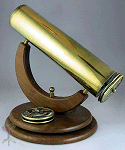 3 mirror systems: 2, 3, and 4 mirrors. Brass barrel on walnut base. 6 interchangeable object wheels.