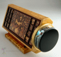 This is the Christmas kaleidoscope from the Durettes for 2007. Laser cut ornamental wood which mimics the "scherenschnitte" (scissor-cutting) technique. Body is figured Western Maple.