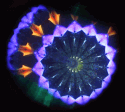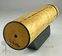 Large birds-eye maple wood veneer tube. Side-lit dynamic image.