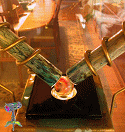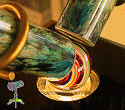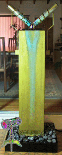 Water fountain with 2 scopes, a two-mirror and a three-mirror. Object is a marble from Jody Fine. Water is